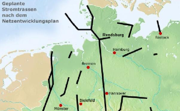 Die Stromtrasse vom Westen nach Süden ist nach Auffassung der Landesregierung keineswegs vom Tisch. Obwohl die 380-kV-Leitung im aktuellen Netzentwicklungsplan nicht berücksichtigt wurde (?), drängt das Energiewendeministerium in Kiel auf einen Ausbau des Stromnetzes in den nächsten drei Jahren.