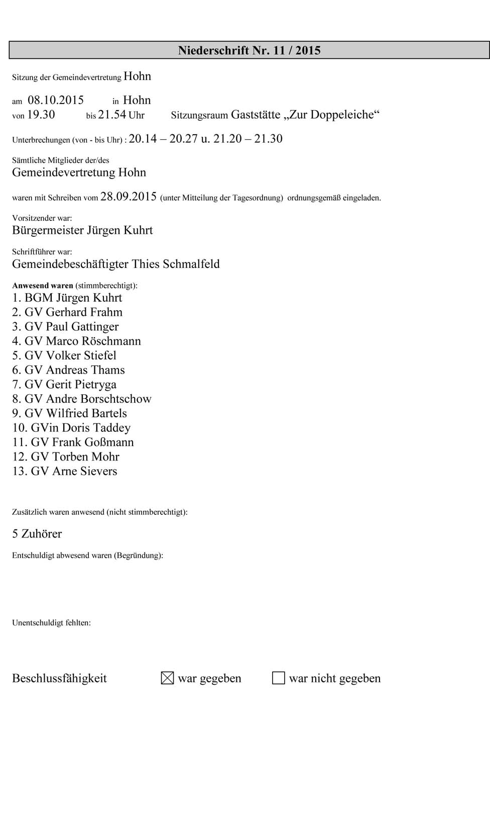 möglicherweise haben ja die wiederholten Hinweise auf dieser Seite etwas bewirkt. Zumindest ging dieses Mal der Hohner Bürgermeister in der Gemeindevertretersitzung im September ausführlicher auf die bisher im Leistungsbezug befindlichen Flüchtlinge ein und nannte Zahlen. Etwas beschämend ist es, dass noch männliche Freiwillige gesucht werden zur Unterstützung der Flüchtlingsbetreuung, und dass dieses Engagement nach wie vor nur eine Fußnote einnimmt. Beschämend deshalb, weil es weder eine Würdigung der bisherigen ehrenamtlichen Leistungen gibt noch eine Lösung erkennbar wird, wie durch hauptberufliche Mitarbeiter die notwendigen Arbeiten abgesichert werden können. Allein die Suche nach neuen Freiwilligen reicht nicht aus, schon gar nicht, wenn unklar bleibt, warum ausgerechnet Männer gesucht werden und für welche Arbeiten. Soweit es sich um unumgängliche Tätigkeiten handelt, um die Flüchtlinge mit dem Lebensnotwendigen zu versehen, ihnen Arbeit zu geben, die deutsche Sprache zu vermitteln, bei Ämtern zu unterstützen, zu dolmetschen oder zu Ärzten zu begleiten, sollten wir als Kommune, Kreis, Land und Bund auch bereit sein, für diese Tätigkeiten ein tarifliches Gehalt zu zahlen. Das geht auch stundenweise. Ehrenamtliches Engagement ist notwendig bei der weiteren Integration, zum Beispiel zur Schaffung von Begegnungen zwischen Dorfbewohnern und Flüchtlingen, die jetzt ebenfalls Dorfbewohner sind, bei der Einbindung in bestehende Vereine, Schaffung von Möglichkeiten, die deutsche Sprache außerhalb des Unterrichts zu sprechen, zusätzliche Initiativen zum persönlichen Kennenlernen. Das können so profane Dinge sein wie Kochen füreinander oder frühzeitige Einbeziehung in einen wiederzubelebenden Hohner Weihnachtsmarkt. Flüchtlinge sind bestimmt bereit, beim Aufbau der Buden zu helfen und man könnte anregen, dass sie selbst Dinge wie traditionelle Handarbeiten oder traditionelles Gebäck anbieten. Ehrenamtlich wäre es natütlich dann auch unumgänglich, die Dorfbewohner zum Kauf der entsprechenden Artikel, zum Kosten des Gebäcks usw. anzuhalten. Nach wie vor sind wir der Meinung, dass die Flüchtlinge in Hohn und das ehrenamtliche Engagement einen eigenen Tagesordnungspunkt auf der Gemeindevertretersitzung zur umfassenden Information auch der Bürger erhalten sollten.