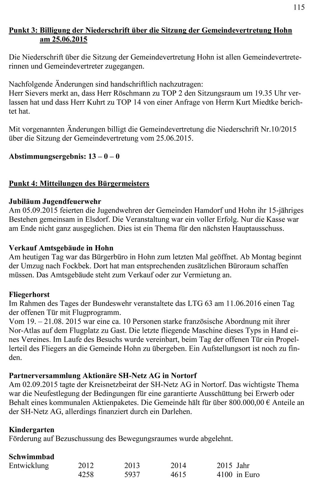 Dem Protokoll ist zu entnehmen, dass weiterhin Anteile an der SH- Netz- AG gehalten werden und der Beirat zu den garantierten oder auch nicht mehr garantierten Ausschüttungen beraten hatte. Angesichts der großen Finanzprobleme der E-on als Muttergesellschaft bleibt diese Beteiligung, noch dazu auf Grundlage von Krediten, in unseren Augen äußerst zweifelhaft. Die garantierten Ausschüttungen an die Kommunen haben die Energiekunden der E- on über ihre Rechnungen zu bezahlen. Das scheinen die Gemeinden in Schleswig- Holstein komplett auszublenden. Schade, dass sich kein Politiker traut, dieses einmal zu thematisieren.